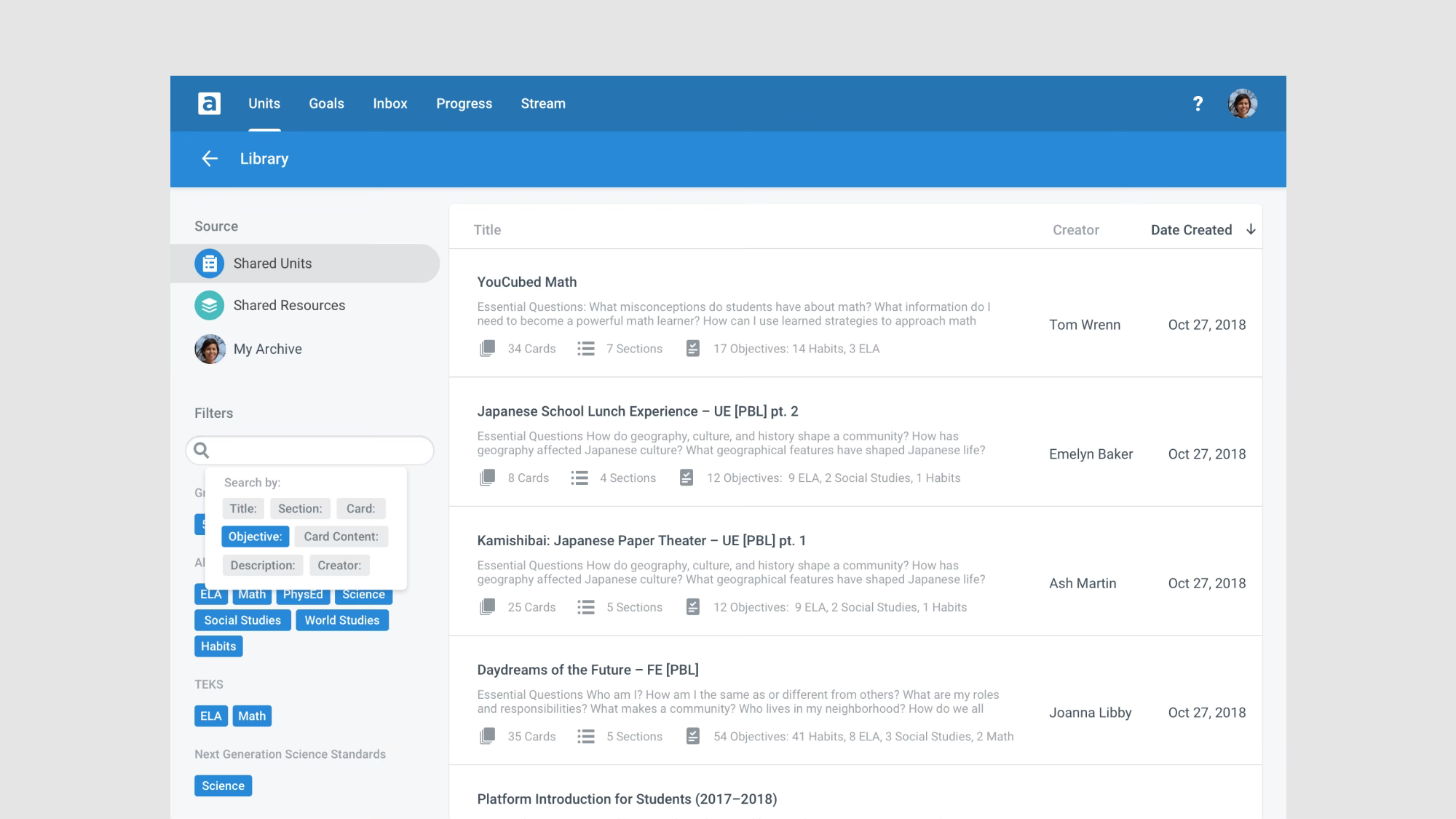 Different school systems use different standards, depending on state requirements and the school’s own educational philosophy. For this, we prioritized a rich tagging system for educators to browse lesson plans aligned with their requirements.